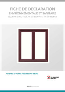 Soucieux de l’impact écologique de notre activité, nous recherchons à tous les niveaux un développement durable. C’est pourquoi nous mettons à disposition nos fiches individuelles de « Déclaration environnementale et sanitaire » pour nos fenêtres, établies selon les normes NF EN ISO 14025 (août 2010), NF EN 15084+A1 (avril 2014) et NF EN 15804/CN (juin 2016).