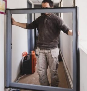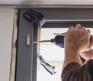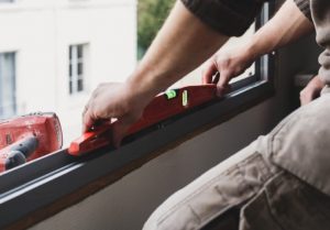 | Mise en place du cadre dormant de la nouvelle menuiserie. | Mise en place du cadre dormant de la nouvelle menuiserie. | Mise de niveau du nouveau cadre dormant. |