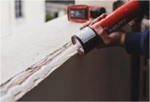 Pose d’un cordon silicone en appui pour la fixation du regingot en bois de classe 4. |