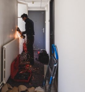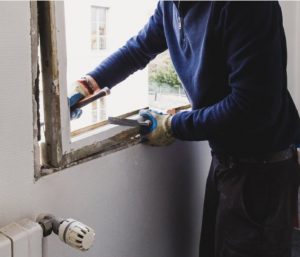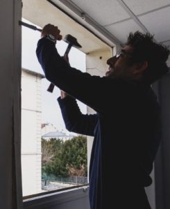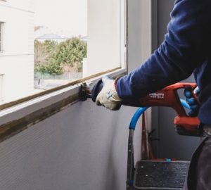 | Mise en place du cadre dormant de la nouvelle menuiserie. | Mise en place du cadre dormant de la nouvelle menuiserie. | Mise de niveau du nouveau cadre dormant. |